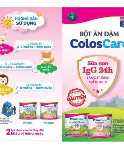 -Bột ăn dặm ColosCare thuộc dòng sản phẩm bột ăn dặm đầu tiên trên thị trường bổ sung Sữa non IgG24h cho bước đệm đầu đời có hệ miễn dịch khoẻ mạnh để bé phát triển toàn diện.