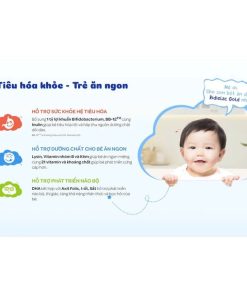 Lysin, vitamin nhóm B và Kẽm giúp bé ăn ngon miệng. Ngoài ra, sản phẩm có chứa 21 vitamin và khoáng chất bao gồm Sắt, Canxi, vitamin D3, C, A, E,… giúp bé phát triển cứng cáp hơn.