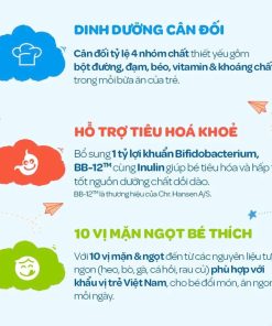 Bổ sung lợi khuẩn Bifidobacterium, BB-12TM cùng chất xơ hòa tan inulin giúp tăng vi khuẩn có lợi, ức chế vi khuẩn có hại, hỗ trợ tốt sức khỏe hệ tiêu hóa, giúp bé hấp thu nguồn dưỡng chất dồi dào, cho bé phát triển thể chất khỏe mạnh.
