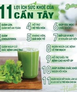 * Cách dùng: Pha 2-3 thìa bột cần tây với 180-200ml nước ấm, khuấy đều và uống thay nước ép cần tây.