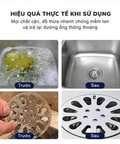 Chờ 3-4h (hoặc qua đêm) để bột phân hủy triệt để chất cặn bã, sau đấy xả sạch nước cho thông thoát.