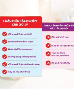 Diệt khuẩn – diệt 99,99% vi khuẩn và khử mùi hôi trong đường ống.