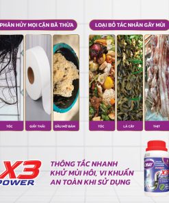 Làm phân hủy nhanh chóng và hiệu quả các váng bẩn, các loại chất thải hữu cơ bán cặn lâu ngày gây tắc nghẽn đường ống: mỡ, rêu, rác rau củ quả, giấy, xác và xương động vật và các loại chất thải từ con người và động vật.
