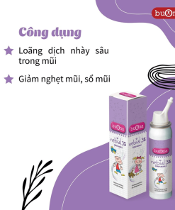 – Dạng bình xịt áp lực BOV giúp ổn định áp lực xịt, tạo hạt dung dịch kích cỡ 20 µm giúp dung dịch vào sâu trong khoang mũi, loại bỏ dịch nhày và mầm bệnh một cách nhẹ nhàng và hiệu quả.