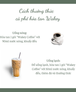 Hòa tan 1 gói “Wakey Coffee” với 75ml nước nóng, khuấy đều và uống nóng. Để uống lạnh, hòa tan 2 gói “Wakey Coffee” với 75ml nước nóng, khuấy đều và thêm đá và thưởng thức.