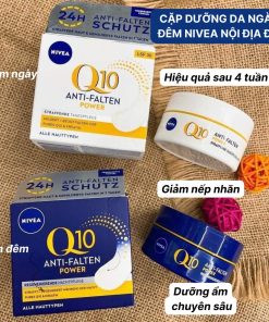 ⚡ Kem dưỡng da chống nhăn Nivea Anti-Falten Q10 plus (ngày và đêm) 50ml cung cấp độ ẩm, cho một làn da khỏe khoắn. Vitamin E trong Q10 giúp da bạn tránh được tác động của ánh sáng mặt trời suốt cả ngày. Sử dụng kết hợp 2 loại kem dưỡng da ngày và đêm, những nếp nhăn sẽ được cải thiện rõ rệt. Anti-Falten Q10 còn có thể sử dụng như lớp kem lót trang điểm, vừa giúp duy trì độ ẩm, vừa có tác dụng bảo vệ làn da.
