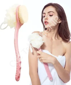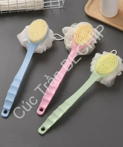 • Tên sản phẩm: Cây bông tắm chà lưng, cọ chà lưng 2 đầu: bàn chải và bông tắm tiện lợi – BECHIP