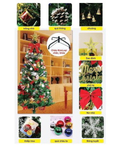 - Màu sắc: Cây thông màu xanh lá, phụ kiện trang trí nhiều màu