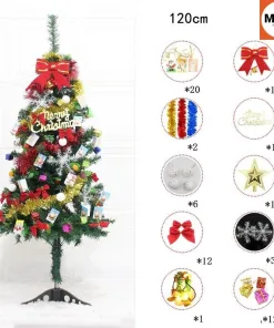 - Cây thông cao 120cm bao gồm: 20 tấm thiệp, 1 nơ to, 2 dây cuốn trang trí, 1 chữ Merry Christmas, 6 quả bóng nhỏ, 1 ngôi sao, 12 nơ, 3 bông tuyết, 1 đèn, 12 hộp quà.