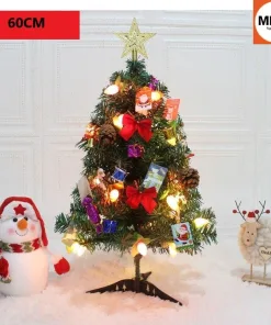 - Cây thông cao 60cm bao gồm: 10 thiệp, 6 hộp quà, dây kim tuyến trang trí, 1 chữ merry christmas, 6 quả bóng hình tròn, 1 nơ to, 6 nơ nhỏ, 1 ngôi sao, 3 bông tuyết, 1 đèn.