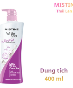 Dưỡng thể MISTINE WHITE SPA WHITE MUSK UV WHITENING LOTION là dòng dưỡng thể có hương thơm đặc trưng và lôi cuốn nhất của nhà Mistine. Với sự kết hợp giữa hiệu quả dưỡng ẩm chuyên sâu và hương nước hoa Xạ hương trắng (White Musk), đây là sản phẩm hoàn hảo cho những quý cô muốn có làn da mướt mịn, vừa mang mùi hương cơ thể quyến rũ.