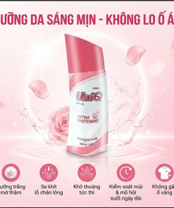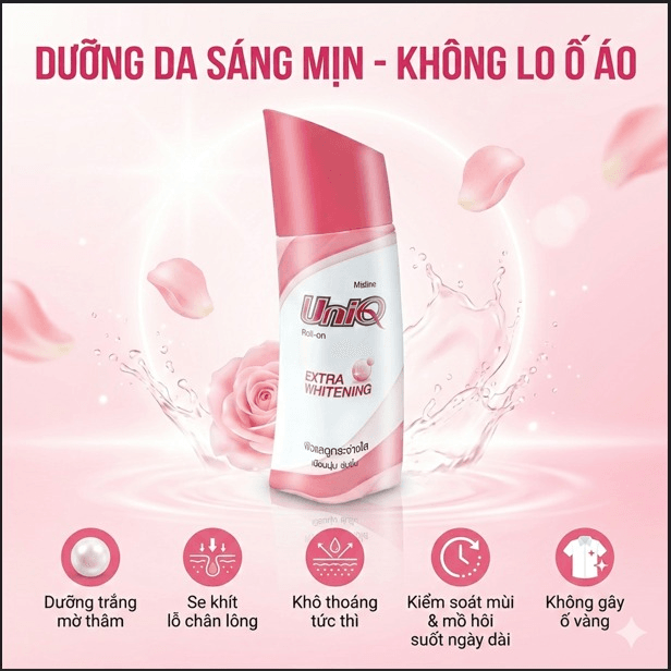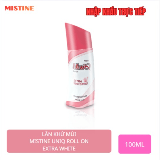 MISTINE UNIQ ROLL ON EXTRA WHITE là giải pháp 2 trong 1 hoàn hảo: Vừa khử mùi chuyên sâu, vừa nuôi dưỡng vùng da dưới cánh tay trắng sáng mịn màng. Với Niacinamide – Vitamin B3 giúp ức chế sự hình thành hắc tố Melanin, làm mờ thâm sạm do dùng nhíp hoặc dao cạo. Chiết xuất Rễ Cam Thảo – thành phần tự nhiên quý giá giúp giảm kích ứng, cung cấp độ ẩm tức thì, nuôi dưỡng làn da mềm mại. Aluminum Chlorohydrate – hoạt chất chuyên dụng giúp giảm tiết mồ hôi hiệu quả trong thời gian dài, giữ vùng da dưới cánh tay luôn khô thoáng, sạch sẽ suốt cả ngày.