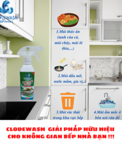 - Tên sản phẩm: Chai Xịt Khử Mùi Nhà Bếp 300ml – CLODEWASH