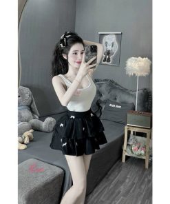 Tên sản phẩm: CHÂN VÁY 2 TẦNG XÒE ĐÍNH NƠ – LÊ PHƯƠNG BOUTIQUE