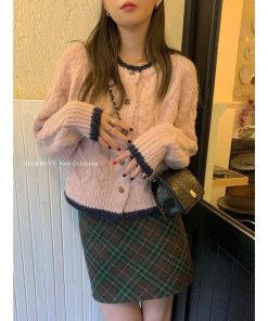 CHÂN VÁY CHỮ A CHẤT DẠ PHỐI HỌA TIẾT KẺ SỌC PHONG CÁCH HÀN QUỐC DÀNH CHO BẠN NỮ