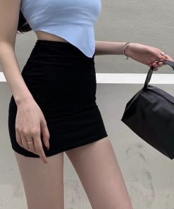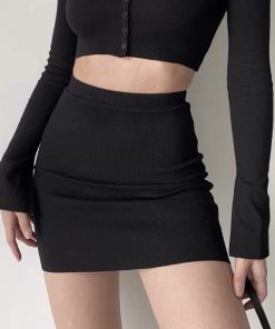 Chân váy đen ngắn mang lại cho phái đẹp vẻ đẹp mềm mại, dịu dàng. Chân váy có thiết kế lưng cao ôm với độ dài vừa phải tạo cho đôi chân cảm giác thon gọn hơn.