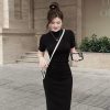 – Chân váy đen ngắn mang lại cho phái đẹp vẻ đẹp mềm mại, dịu dàng. Chân váy có thiết kế lưng cao ôm với độ dài vừa phải