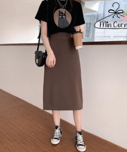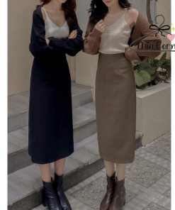Chân Váy Dài, Chân Váy Midi Xẻ Sau Trẻ Trung Chất Tuyết Mưa Loại 1
