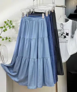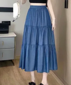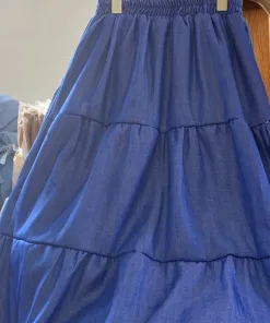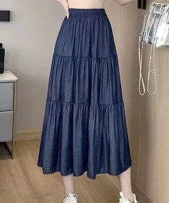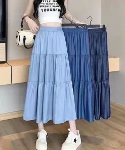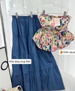Tên sản phẩm: CHÂN VÁY DÀI XÒE CHẤT VẢI JEAN LỤA GIẤY MỀM MÁT – LÊ PHƯƠNG BOUTIQUE