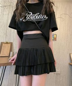 – Chân váy được thiết kế với cạp chun co giãn tốt, phần cạp cao gen bụng giúp che bớt khuyết điểm vòng 2 cho các chị em.