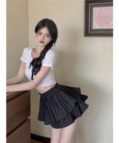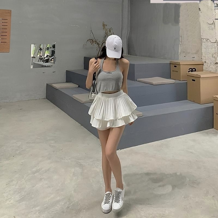 CHÂN VÁY DẬP LY CẠP CAO 2 TẦNG PHỒNG PHONG CÁCH ULZZANG