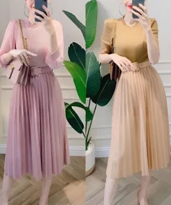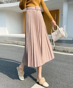 CHÂN VÁY DẬP LY KÈM ĐAI CHẤT LIỆU UMI PHONG CÁCH VINTAGE