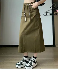 Chân Váy Dài, Chân Váy Midi Xẻ Sau Trẻ Trung Chất Tuyết Mưa Loại 1
