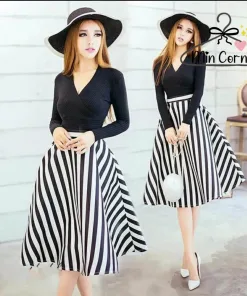 CHÂN VÁY KẺ SỌC FORM XÒE MV30 – MIN CORNER