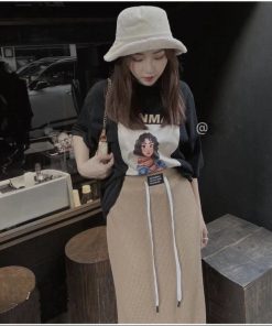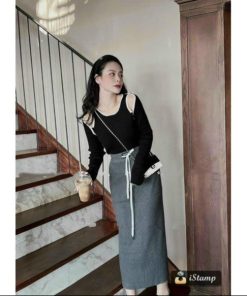 CHÂN VÁY LEN BÚT CHÌ DÁNG DÀI PHỐI TAG PHONG CÁCH HÀN QUỐC DÀNH CHO BẠN NỮ