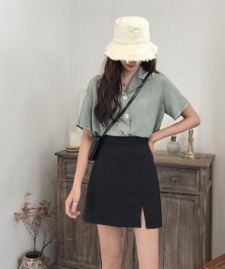 Chân Váy Ngắn Chữ A Xẻ Tà Phong Cách Công Sở Lưng Cạp Cao Trẻ Trung