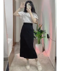 Dáng dài đến bắp, xẻ tà sau mang phong cách hàn trẻ trung, nữ tính