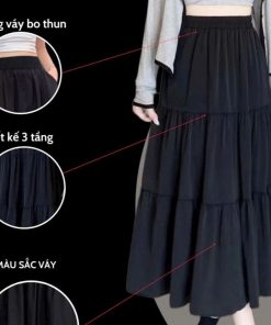 CHÂN VÁY TẦNG DÁNG DÀI LỤA HÀN BT45G – NANA FREEESIZE < 55KG