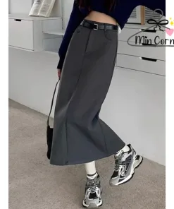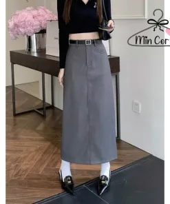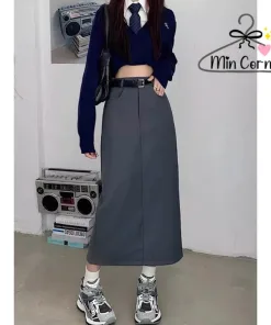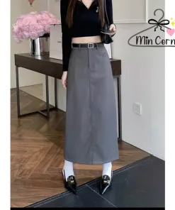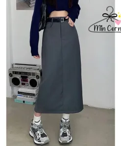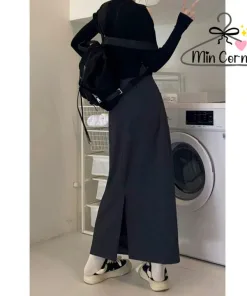 Chân váy ulzzang midi ,chân váy dài xẻ sau phong cách trẻ – khoá trước MV39 – MIN CORNER