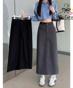 Tên sản phẩm: Chân váy ulzzang midi ,chân váy dài xẻ sau phong cách trẻ – khoá trước MV39 – MIN CORNER