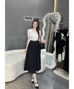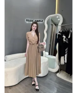 CHÂN VÁY XẾP LY DÁNG DÀI PHỐI TAG MÓC CÀI NHẸ NHÀNG, TIỂU THƯ