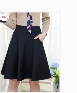 Chân váy có độ dài đến gối, được may một màu trơn đen nhưng tinh tế, ấn tượng với túi hai bên lạ mắt, độc đáo.