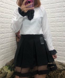 -Chân váy xòe cách điệu phối lưới được thiết kế thời trang, mang đến vẻ ngoài nữ tính không kém phần sang trọng cho bạn gái.