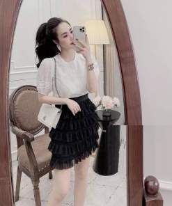 Chân váy ngắn với thiết kế 5 tầng xòe điệu đà, trẻ trung, năng động, bạn có thể mix cùng áo phông, áo sơ mi, áo croptop đều phù hợp