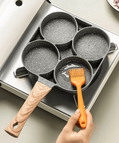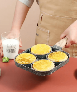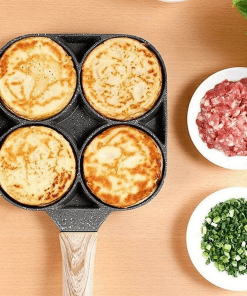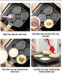 - Chảo chống dính chia 4 ngăn – Chảo chống dính 4 ngăn chiên trứng làm bánh với tay cầm gỗ