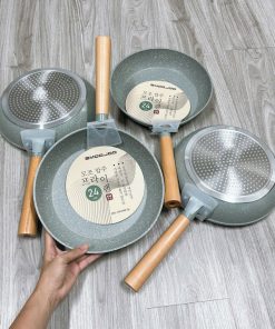 + Chảo được phủ lớp vân đá nhám Hàn Quốc và phủ lớp chống dính ceramic cao cấp cả 2 mặt, giúp chống dính tốt, vệ sinh dễ dàng