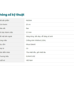 • Tên sản phẩm: CHẢO CẠN INOX 5 ĐÁY SUNHOUSE IN20M4