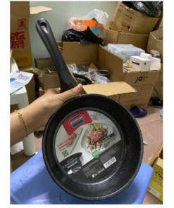 Chảo được thiết kế đẹp mắt với mặt ngoài được phủ sơn tĩnh điện màu bạc bắt mắt, có khả năng hạn chế trầy xước và bám bẩn. Lòng chảo tráng chống dính vảy giả đá siêu bền, ngăn bắt bẩn, chống bám bụi và hạn chế trầy xước đem lại tổng thể đơn giản nhưng không kém phần bắt mắt.