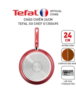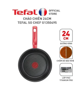 • Nồi, chảo Tefal So Chef thiết kế từ Pháp được làm bằng hợp kim nhôm cao cấp với màu đỏ sang trọng bên trong là phủ lớp chống dính Titanium Reinforced, thích hợp cho nhiều kiểu nấu nướng, sử dụng được trên bếp từ.