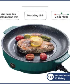 Chảo nướng điện mini,Bếp Nướng Thịt BBQ Bằng Điện Đường Kính 26 cm Kiểu Hàn Quốc