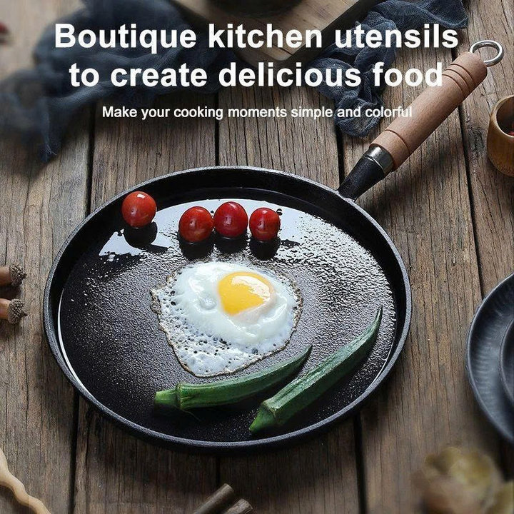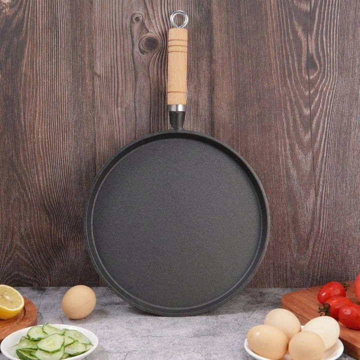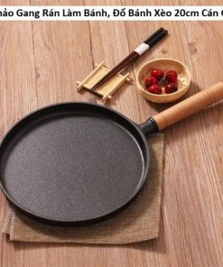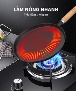 Chảo gang chống dính đúc nguyên khối quai cầm gỗ cách nhiệt