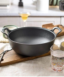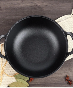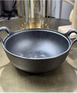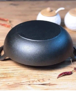 🔸 Chảo gang sâu lòng đúc thủ công nguyên khối 2 quai dùng được bếp từ, bếp ga, bếp hồng ngoại, bếp củi, bếp than hoa..