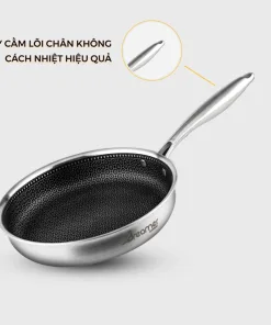 Đặc biệt với bề mặt không sử dụng sơn phủ mà khắc laser chống dính toàn phần nên tuyệt đối an toàn và siêu bền, có thể sử dụng dụng cụ kim loại để đun nấu mà không sợ bong tróc bề mặt chống dính.