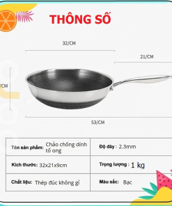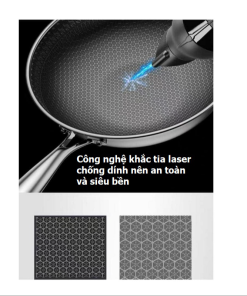 - Chảo Tổ Ong Siêu Chống Dính 2 mặt inox 304, với công nghệ khắc laser tổ ong 32cm sâu lòng. Không còn nỗi lo dính chảo khi chiên, xào.