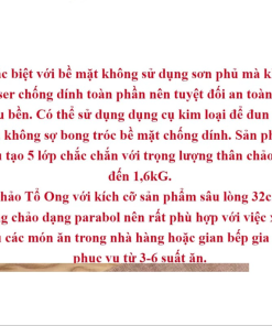 - Với kích cỡ sản phẩm 32cm, lòng chảo dạng parabol nên rất phù hợp với việc xào, nấu các món ăn trong nhà hàng hoặc gian bếp gia đình phục vụ từ 3-6 suất ăn.