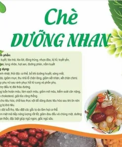 - Thành phần: nấm tuyết, táo trái, táo lát, đông trùng, nhựa đào, kỷ tử, tuyết yến, hạt chia, long nhãn, hạt sen, đường phèn, nấm tuyết.